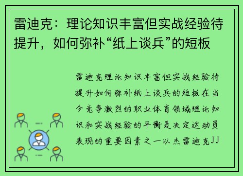 马健评基德:曾以为他是名帅,实际只是有名的主帅 篮球是一个充满竞争和荣耀的运动,而在这项运动中,教练的角色至关重要。许多人认为,一个优秀的教练应该具备高超的战术眼光、出色的沟通能力以及培养球员成长的...